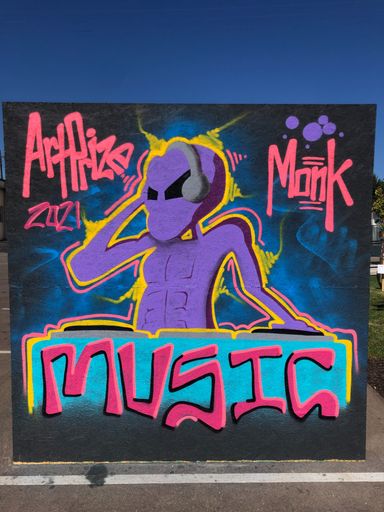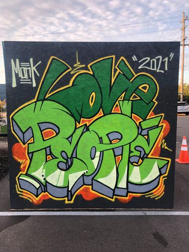 Monk is an accomplished muralist with new walls popping up every year. He loves to collaborate with youth and teach mural design and execution in the process of beautifying walls around West Michigan. Monk's preferred method is a spray can.